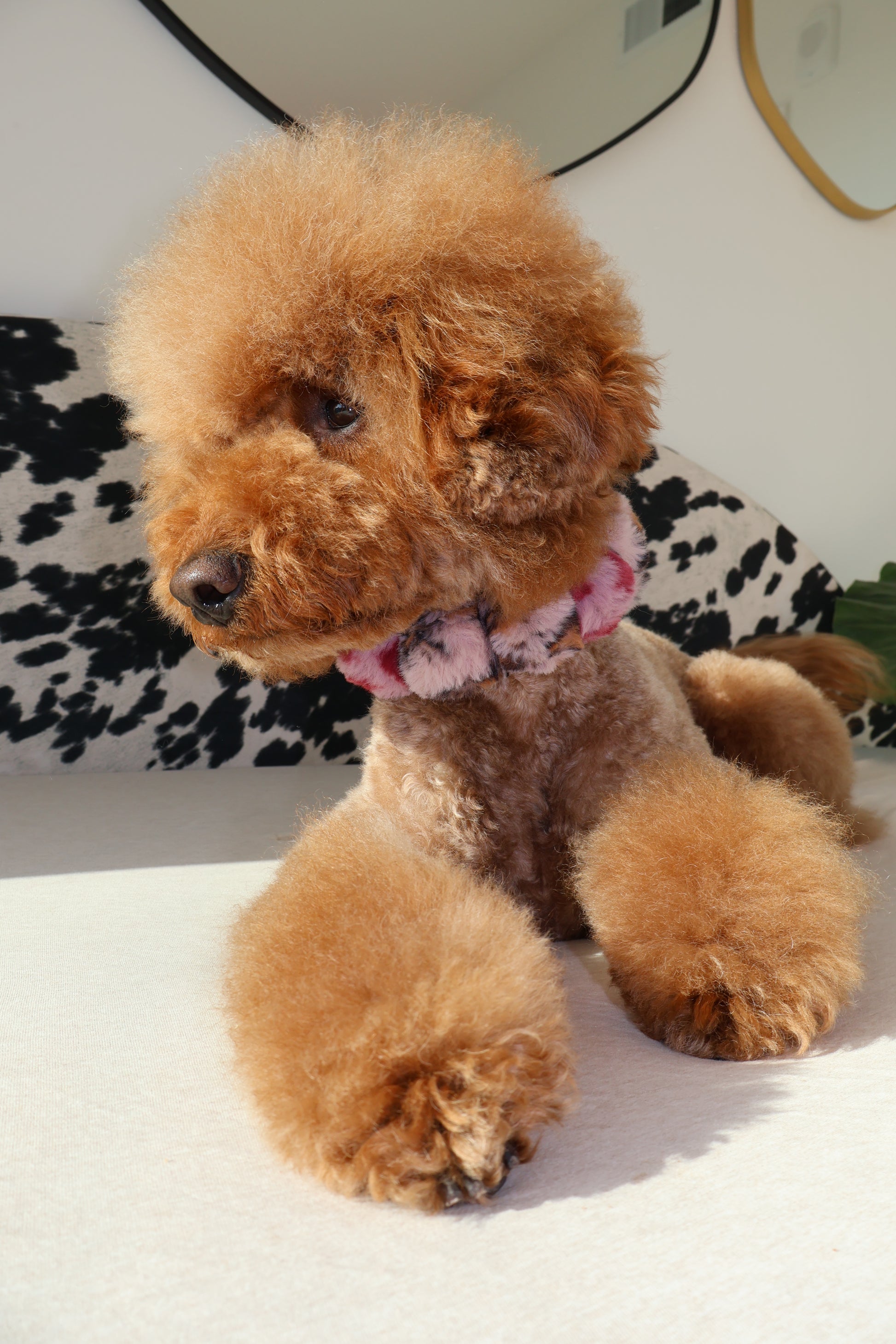 The Fierce necklace reimagines what it means to be strong. With its vibrant pink pattern, this piece challenges the idea that power must be hard, sharp, or loud. Instead, it proves that true fierceness can be soft, stylish, and unapologetically unique. Fierce knows no gender and refuses to be confined by rules of tradition or appearance. Whether your pup is strutting with confidence or lounging with quiet grace, this glam statement celebrates strength on their own terms.