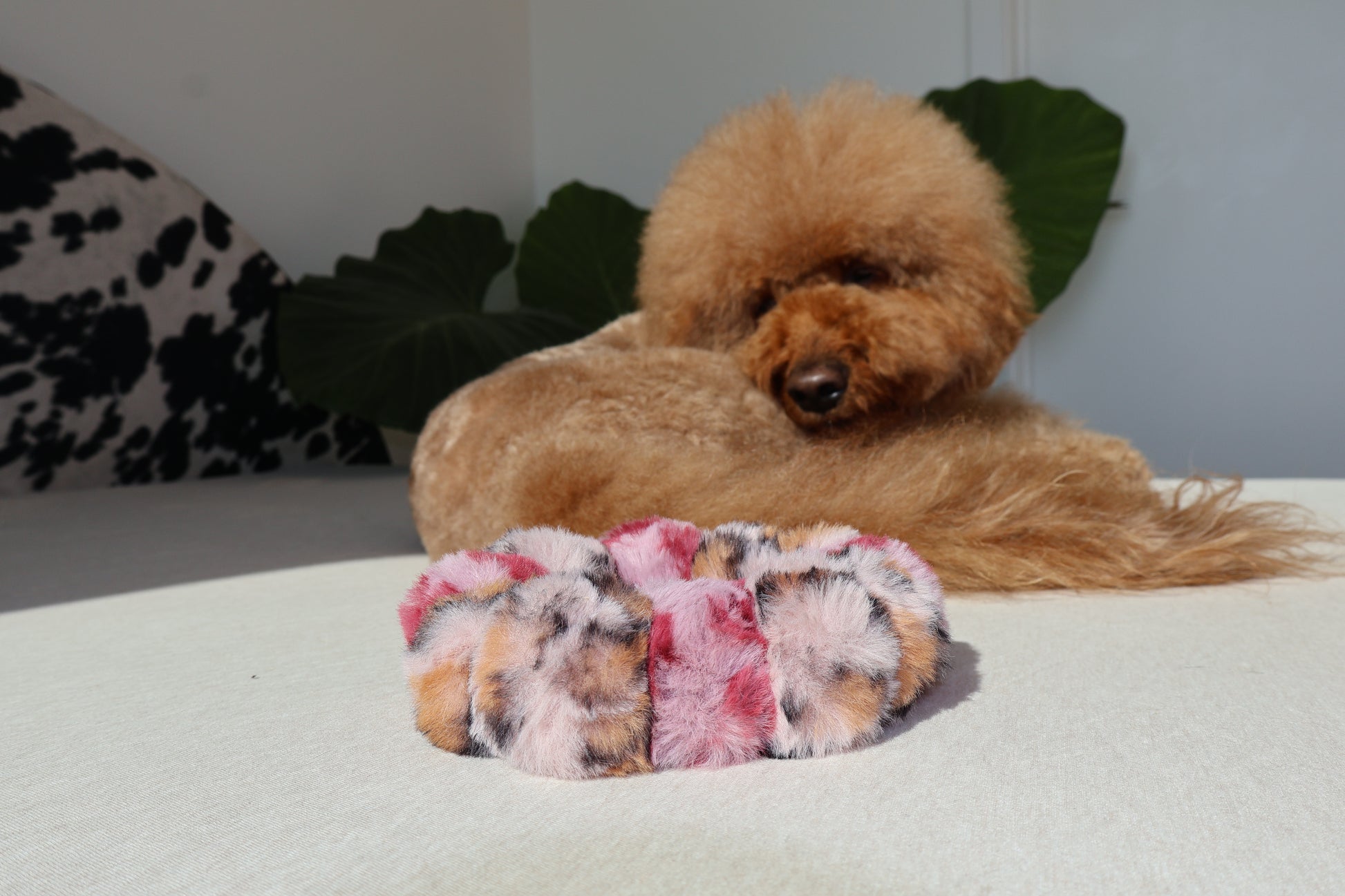 – Luxe fluffy pearl-inspired design (not for collar/leash use)